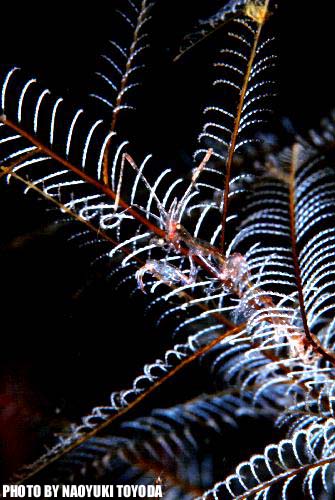 刺胞毒を持つシロガヤ。その中にひっそりと、まるで幽霊のように潜んでいるワレカラモドキ。2cmほどの小さな奴。静岡県・西伊豆安良里 水深15m。