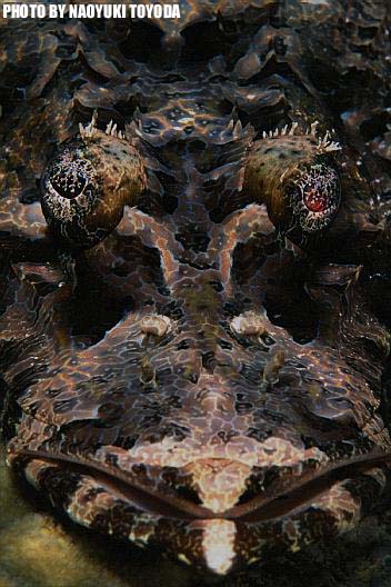 全長1mほどの大型のコチ。眼にある簾のような模様がこのサカナを見分けるひとつの要素。世界史の教科書にで出てくる哲学者のような顔つきである。